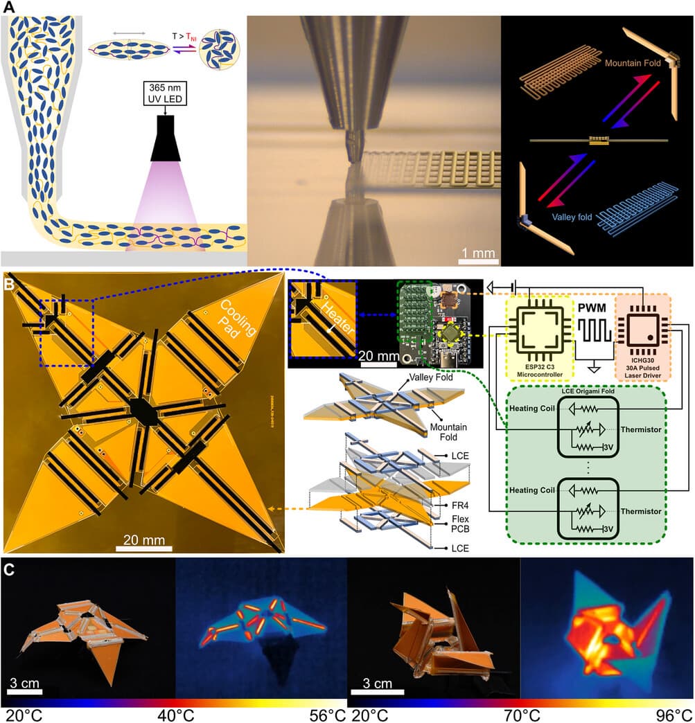 Инженеры из Принстона разработали гибридных мягко-жёстких роботов, которые не нуждаются в моторах или воздушных насосах. Используя жидкокристаллический эластомер и вдохновлённые оригами, они создали роботов, способных двигаться без износа.