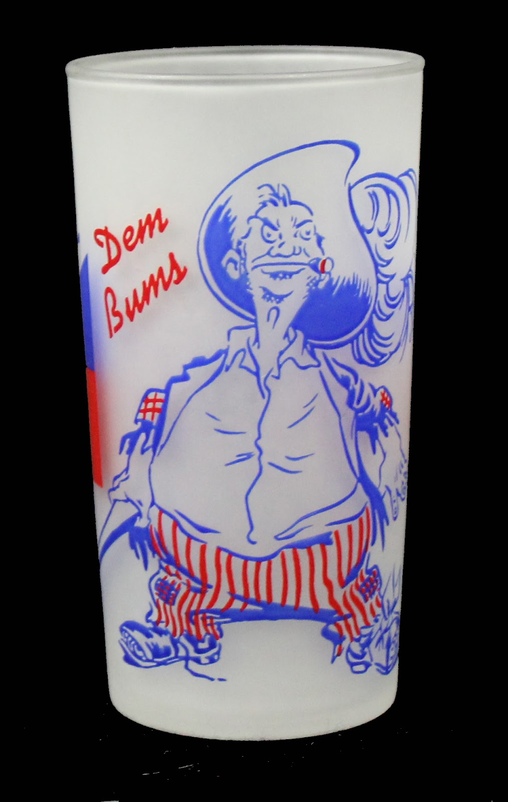 Next is the below circa 1950's Brooklyn Dodger tumbler. I am very familiar with the design, having a similar vintage sticker in my collection, but have never seen it on glass like this. (Auction Link)