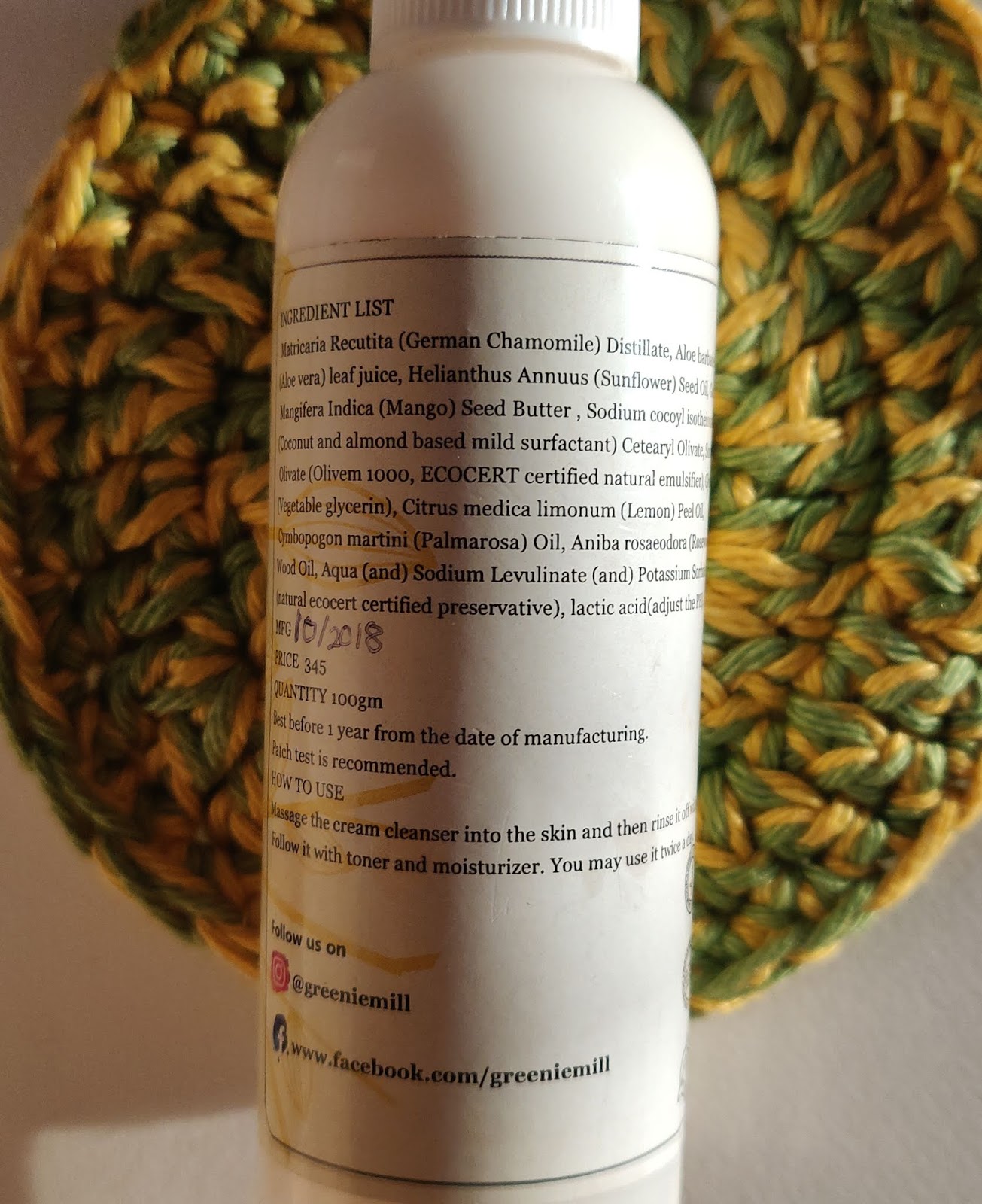 I have tried many products by Greenie Mill and they have never ever disappointed me. Today I am reviewing the Greenie Mill Mango And Chamomile Cleansing Cream which I had purchased a long time back. I really like using cleansing milks, so cleansing cream caught my attention as I have never used one. Let's see the Review of Greenie Mill Mango And Chamomile Cleansing Cream.