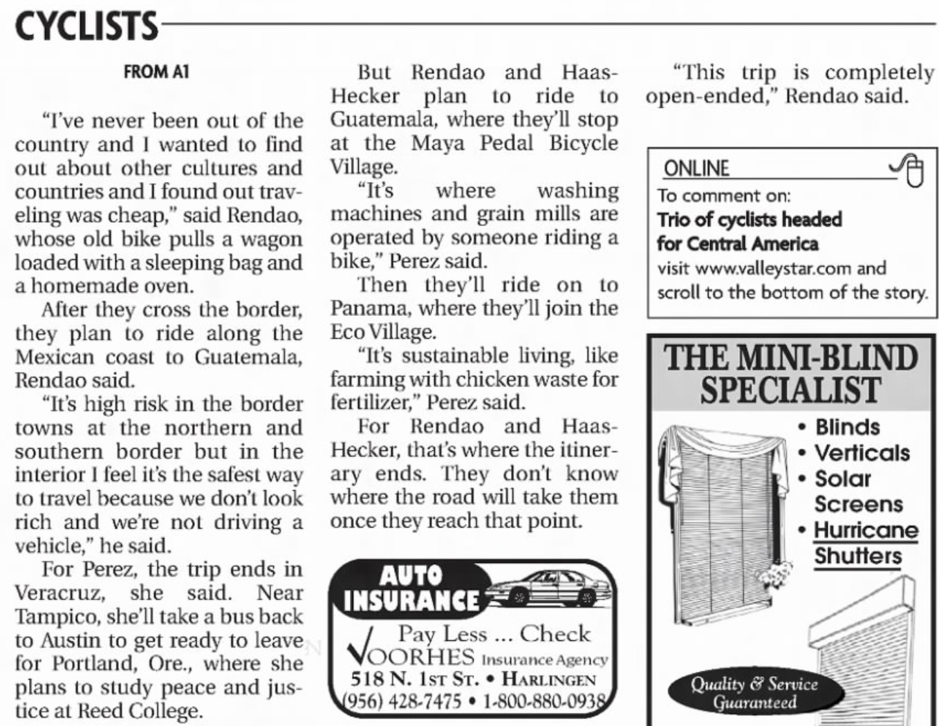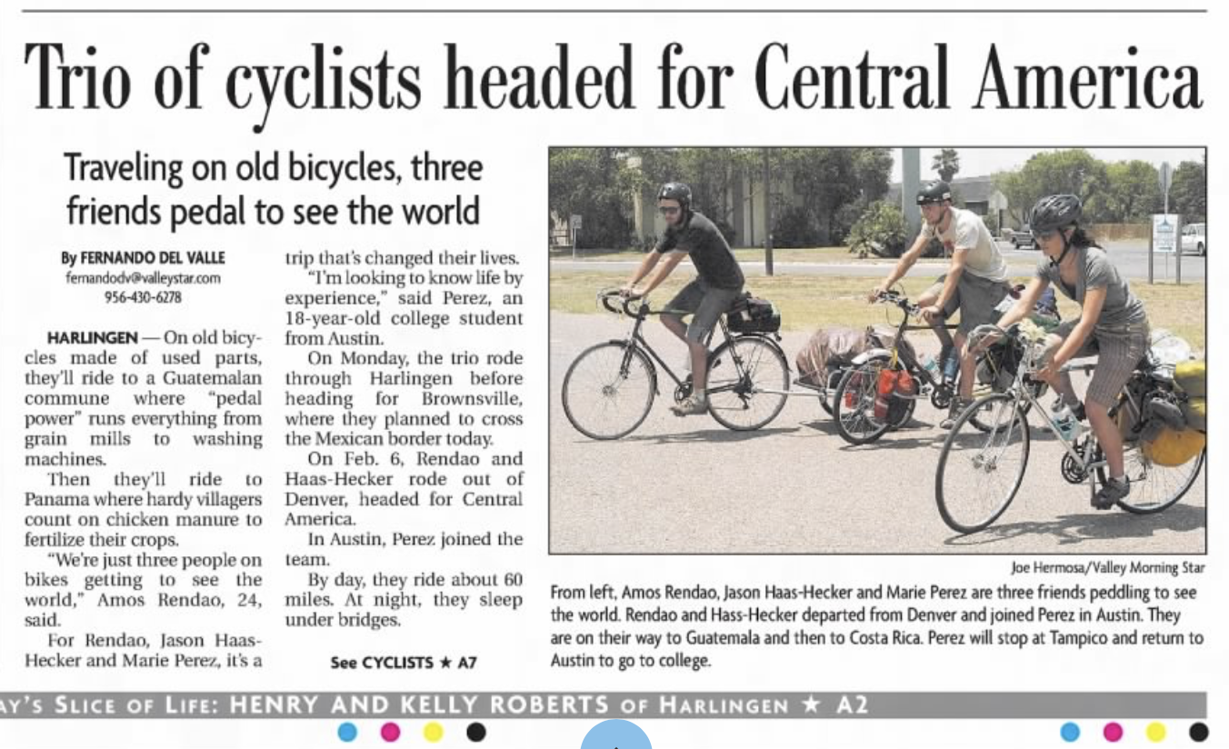 The Ecuador journey was Gluesenkamp Perez’s second extended bicycle trip to Latin America. Her first took place before she enrolled at Reed in 2007. A May 15, 2007, article in the Valley Morning Star, a newspaper in her home state of Texas, reported that at age 18 she embarked on a ride from Austin, Texas, to Veracruz, Mexico, alongside two other cyclists. The article also noted that she planned to study "peace and justice" at Reed—rather than economics, the degree she ultimately earned when she graduated in 2012 (before enrolling at Reed, Gluesenkamp Perez briefly attended Warren Wilson College, an expensive school in the North Carolina mountains).