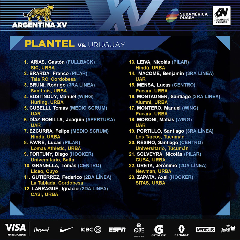 En los forwards se suman Bruni, Favre, Larrague, Leiva, Montagner, Zolveyra, Ureta y Zapata, mientras que en los backs se acoplan los dos nombrados anteriormente además de Arias, Ezcurra, Granella y Mensa.