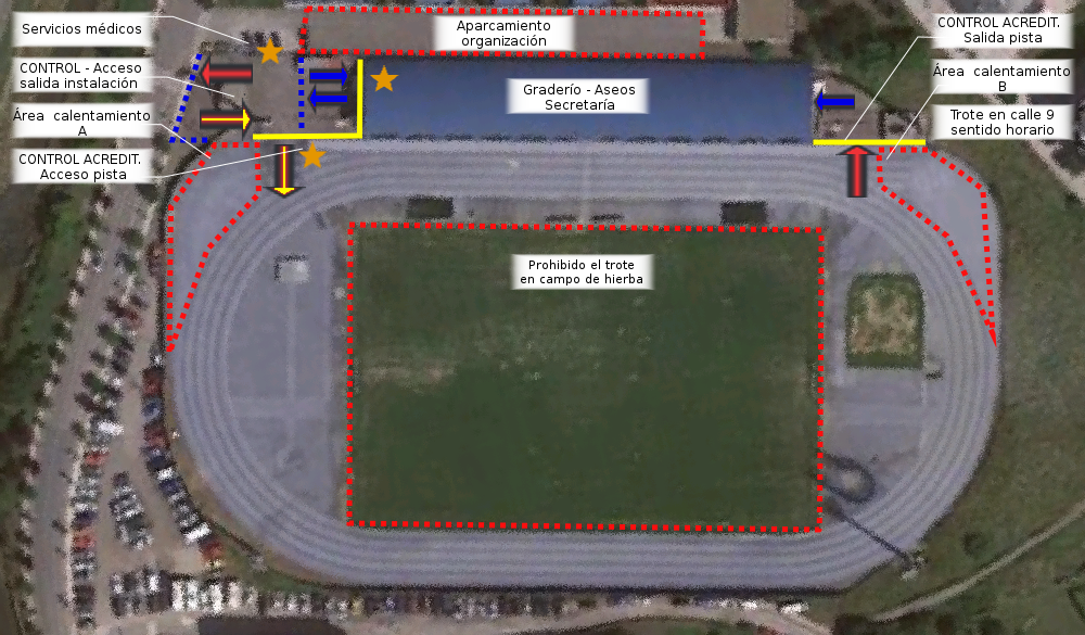La participación estará limitada a 300 participantes de todas las pruebas y el público no podrá exceder los 400 espectadores. Se habilitará control de acceso a la instalación y un segundo nivel de control que encauzará a los visitantes hacia la pista de atletismo en caso de tratarse de deportistas o delegados, o bien hacia las gradas.