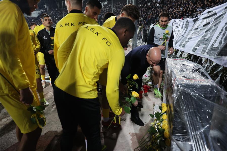 ΑΕΚ: Παίχτες και Ηλιόπουλος τίμησαν τη μνήμη των θυμάτων του ΠΑΟΚ