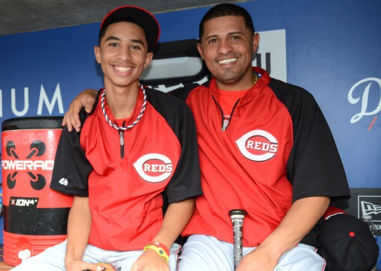 | César Izturis en su último año en la MLB, en 2013. Su hijo César Daniel entonces tenía 13 años de edad |
