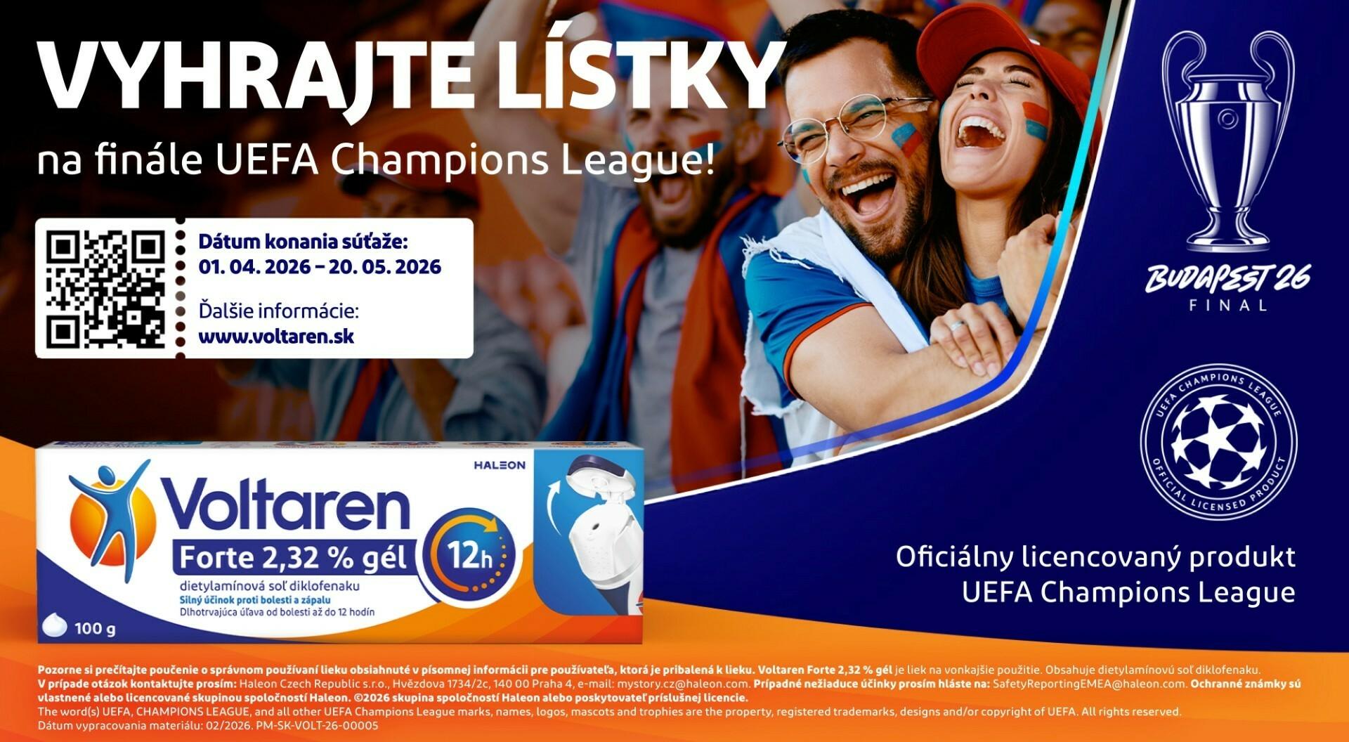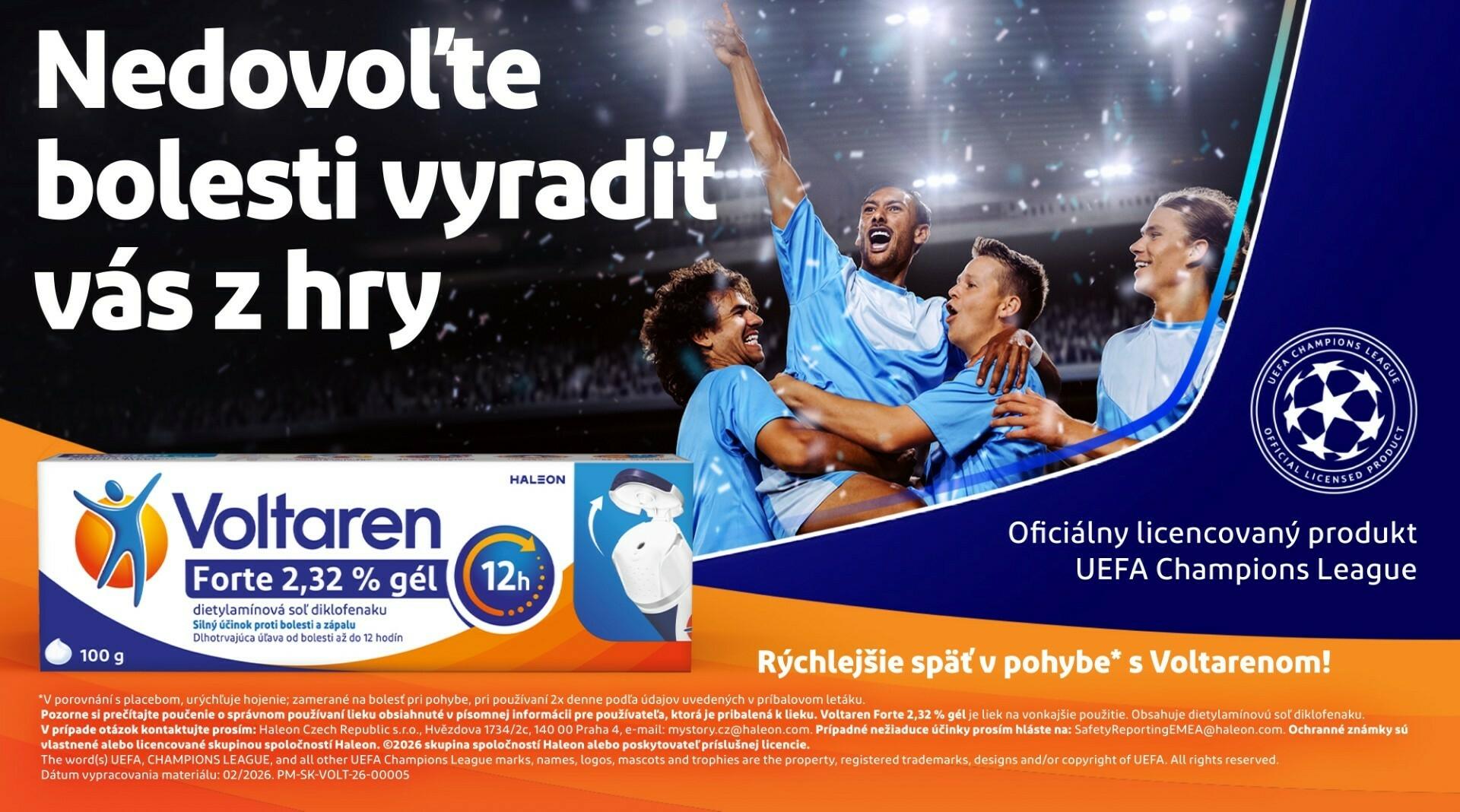 • Produkty Voltaren na lokálnu úľavu od bolesti sa stávajú oficiálnymi licencovanými produktmi Ligy majstrov UEFA pre sezóny 2025/26 a 2026/27.