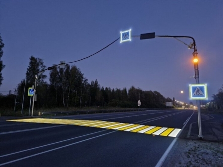 Инновационный пешеходный переход повышает безопасность на трассе Псков – Гдов