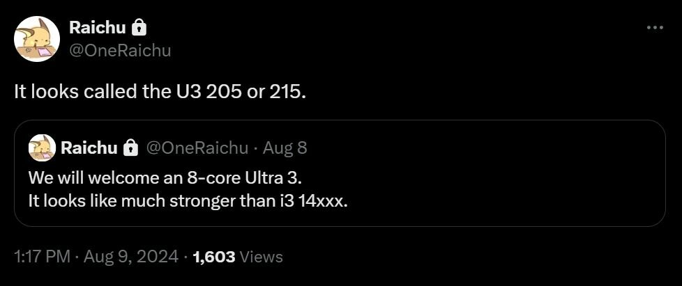 Дело в том, что процессор Core Ultra 3, если верить данным поставщиков секретной информации, будет продаваться с 8 ядрами на борту, что позволит ему существенно обойти в плане производительности представителей Core i3 14-го поколения. Вероятно, процессор получит 4 производительных P-ядра и 4 энергоэффективных E-ядра, но даже в этом случае прирост производительности будет колоссальным, так как текущие самые новые чипы из линейки Core i3 (Core i3-14100 и Core i3-14100F без интегрированной графической подсистемы) могут похвастаться всего 4 ядрами. Кроме того, если слитые данные окажутся правдивыми, это будет первый в истории компании Intel процессор серии Core i3 (или уже Ultra 3), который получит 8 ядер.