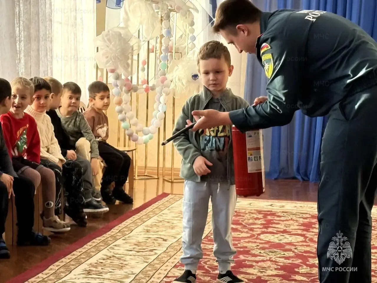 Школьники и дошкольники узнали, что делать, когда звучит сигнал тревоги и надо срочно покинуть здание. Спасатели строго предупредили, что играть с огнем нельзя, а также показали, как правильно пользоваться огнетушителем.