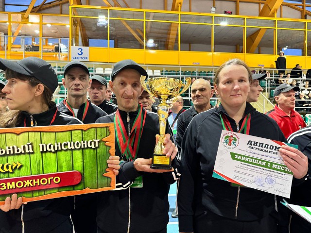 Команда социального пансионата ´Каменка´ - победитель областной спартакиады ´Спорт для всехВ спорткомплексе ´Олимпиец´ наградили победителей областной спартакиады ´Спорт для всех´ среди граждан, проживающих в социальных пансионатах Могилевской области.Участие в спартакиаде приняли более 100 человек из девяти социальных пансионатов региона. В програ ...