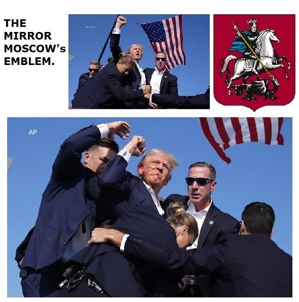 ЗЕРКАЛЬНЫЙ ГЕРБ МОСКВЫ С ДОНАЛЬДОМ ТРАМПОМ И СЕКРЕТНОЙ СЛУЖБОЙ США: