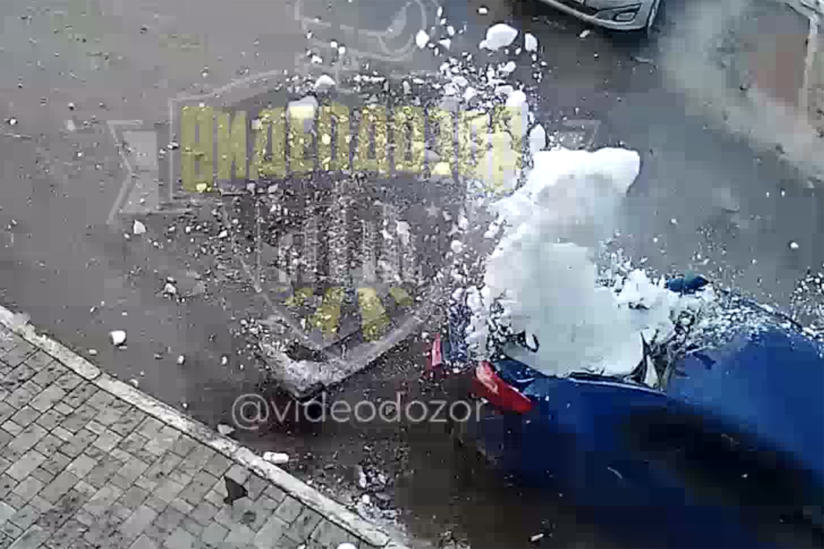 В Башкирии на видео попало, как ледяная глыба рухнула на машину и раздавила ее. Об этом сообщает Telegram-канал "Видеодозор".