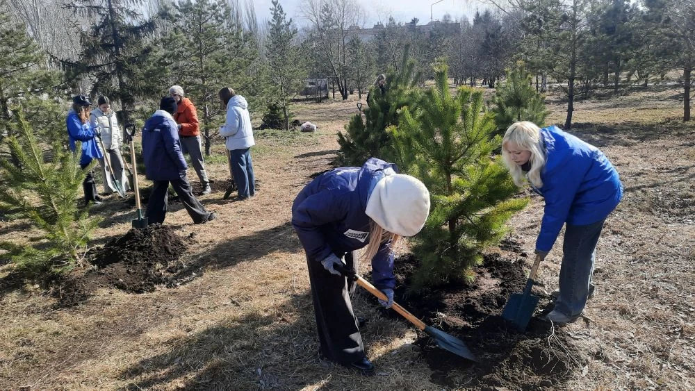 Вместе с горожанами руководители высадили на территории сквера Молодожёнов сосны и шаровидные ивы, тем самым внеся вклад в озеленение и благоустройство одного из знаковых мест города.