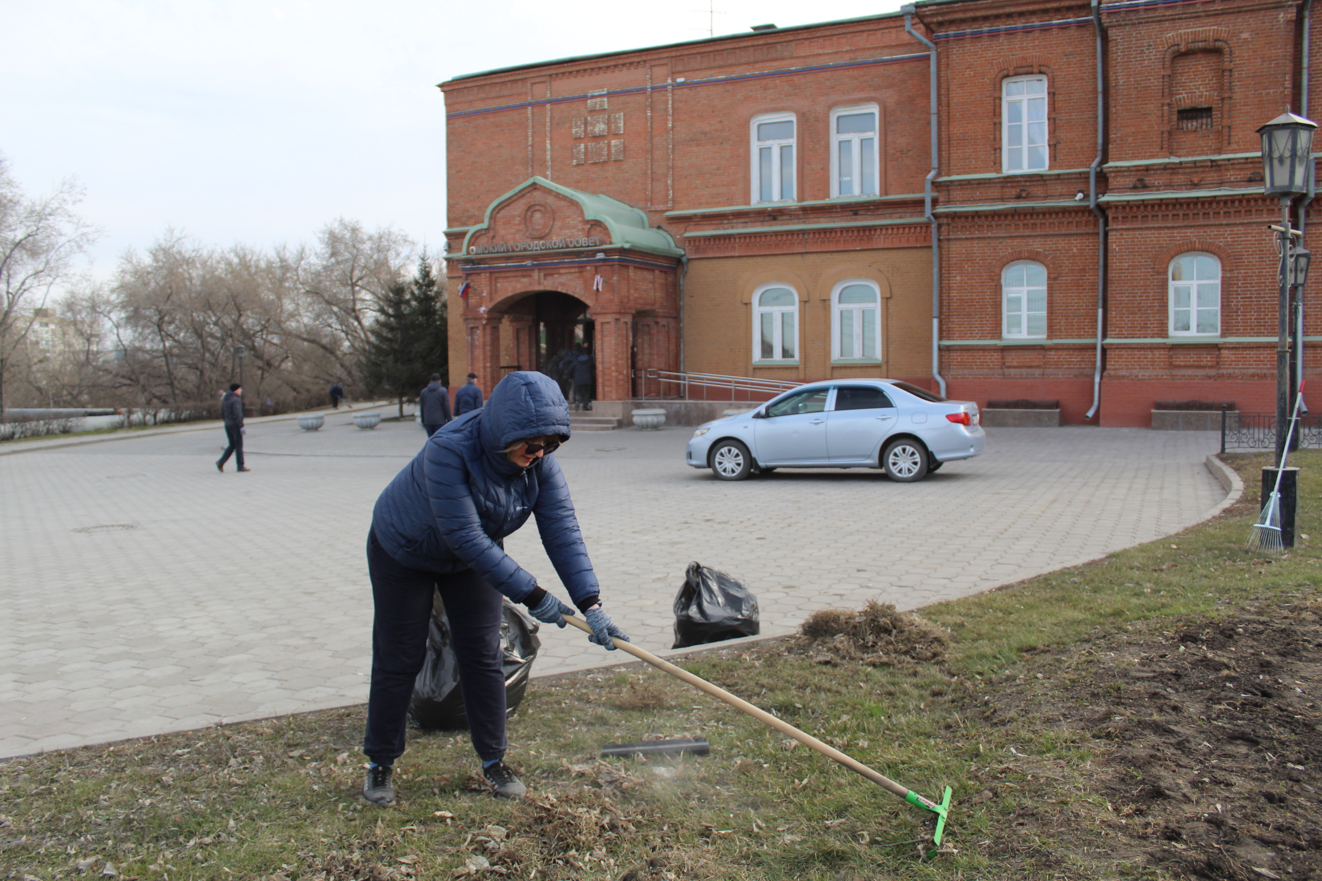 К уборке территорий традиционно присоединились сотрудники Омского городского Совета. Они навели порядок возле исторического здания парламента, были расчищены дорожки и прилегающие к ним газоны. Здесь же расположена одна из самых красивых клумб города. Уже скоро на ней вновь зацветут розы.