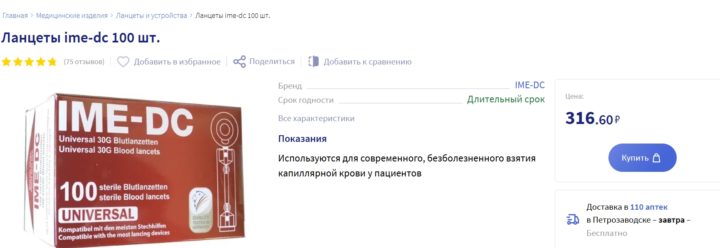 Отметим, что ланцеты обычно продаются упаковками. Цена на них невысокая. Так, 100 штук ланцетов стоят чуть больше 300 рублей. То есть на одного больного ребенка надо выделить примерно 400-500 рублей в месяц. Но, возможно, в рамках госзакупки ланцеты можно купить и дешевле.