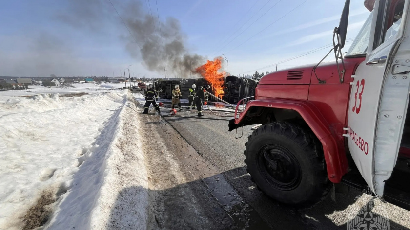 Жуткая авария случилась в воскресенье, 15 марта, у поселка Афанасьево в Кировской области. На 855 километре трассы, соединяющей Кострому, Шарью, Киров и Пермь, опрокинулась и загорелась фура. Водитель чудом уцелел в ДТП, а выбраться из кабины ему помогли проезжающие мимо автомобилисты. Для тушения б