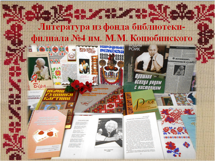 Сотрудники библиотеки приглашают еще раз восхититься талантом и мастерством нашей знаменитой землячки, старейшей мастерицы народного творчества, создателя крымской школы народной вышивки Веры Сергеевны Роик.
