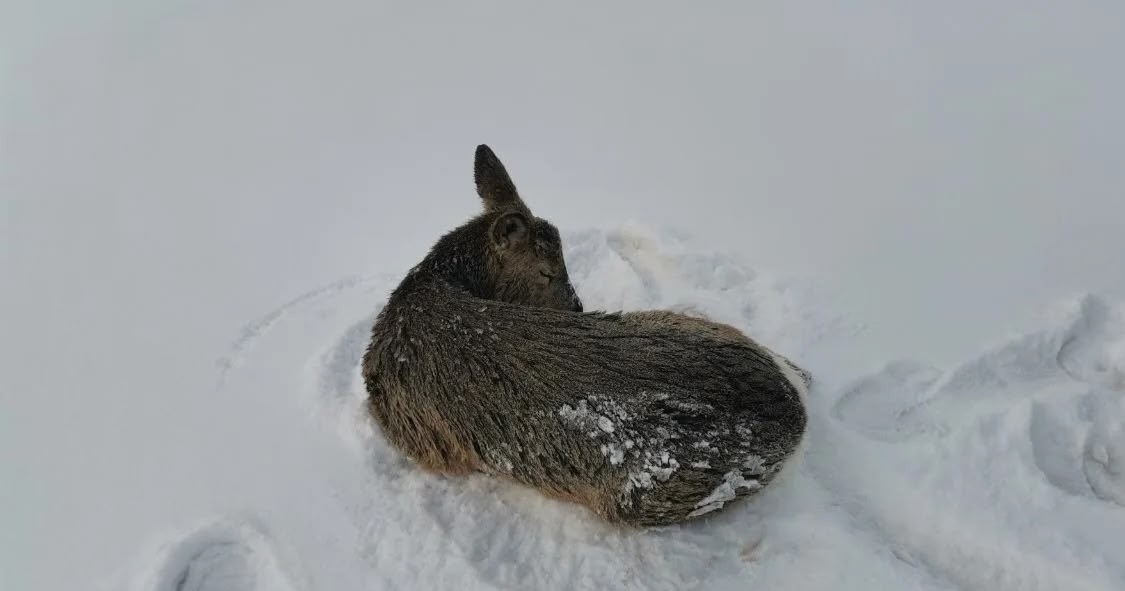 Она вышла на водоем, но перебежать по скользкой глади ей не удалось