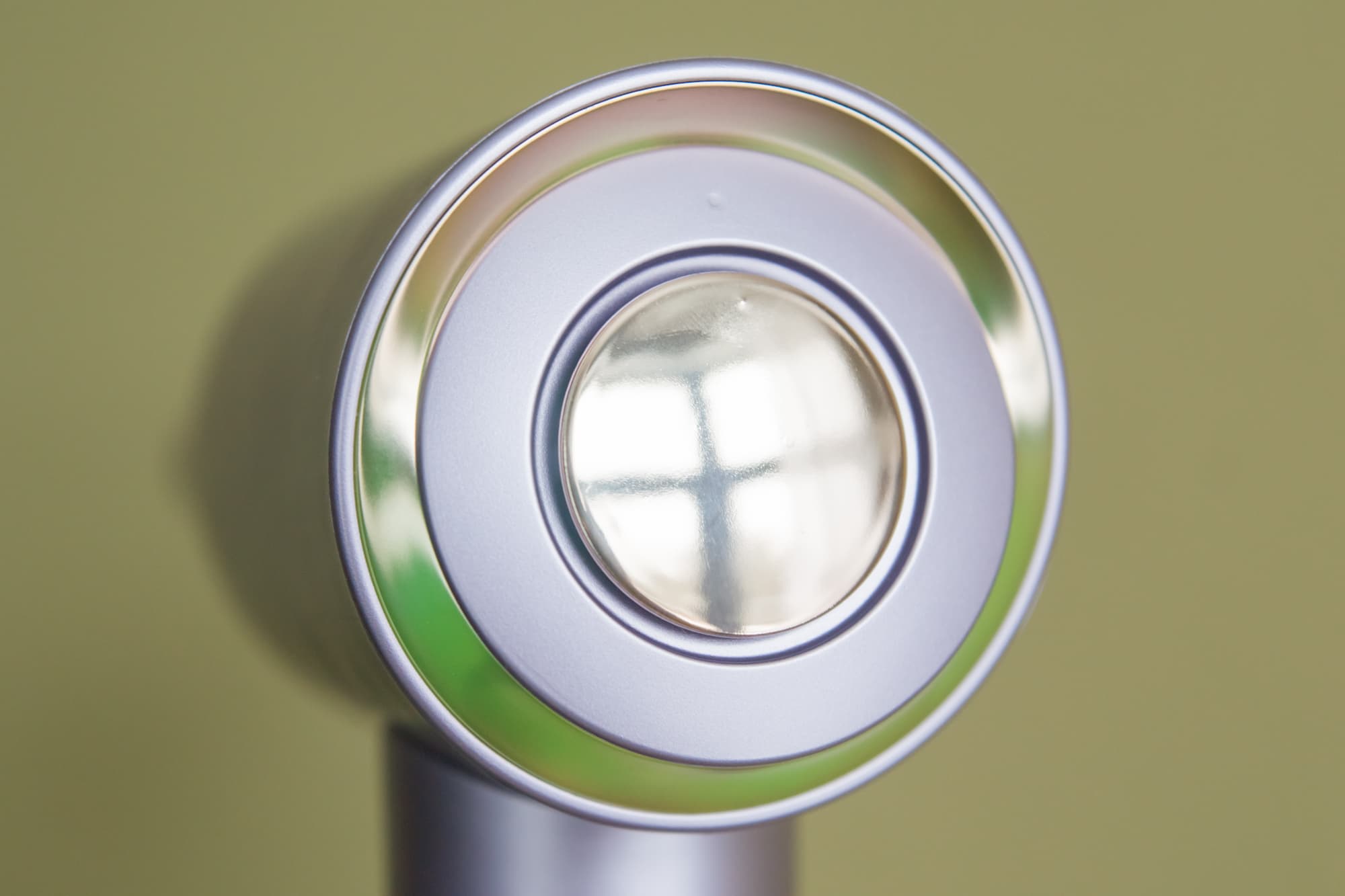 С тыльной стороны цилиндрического корпуса по окружности встроено светодиодное кольцо. Во время работы оно меняет цвет в зависимости от уровня нагрева.