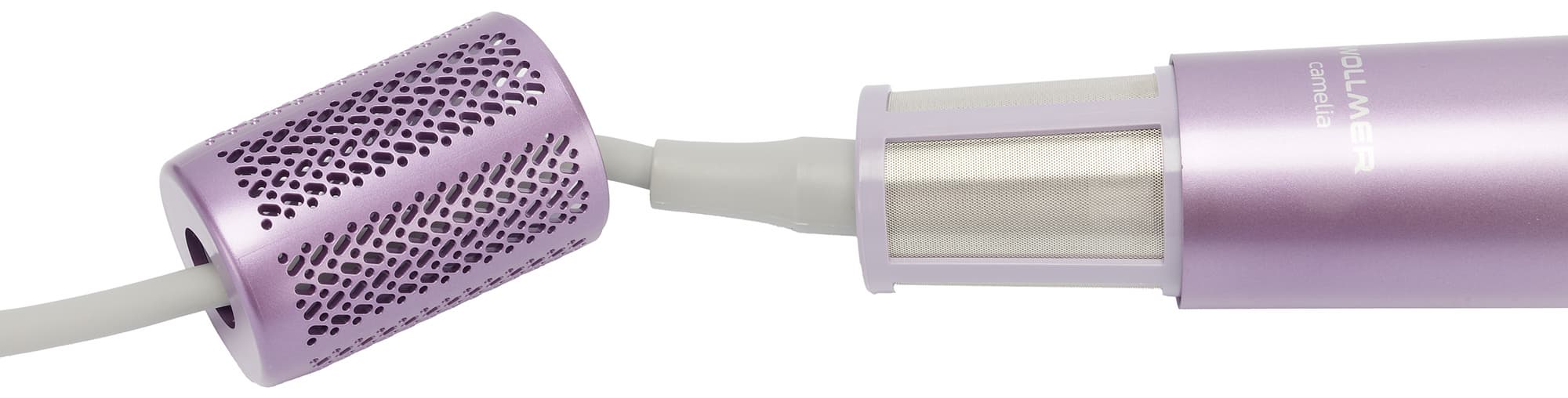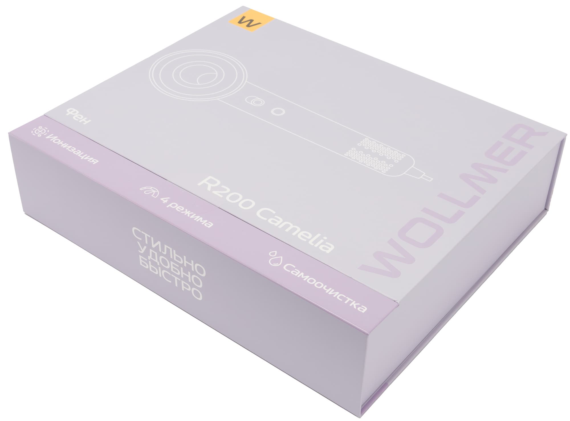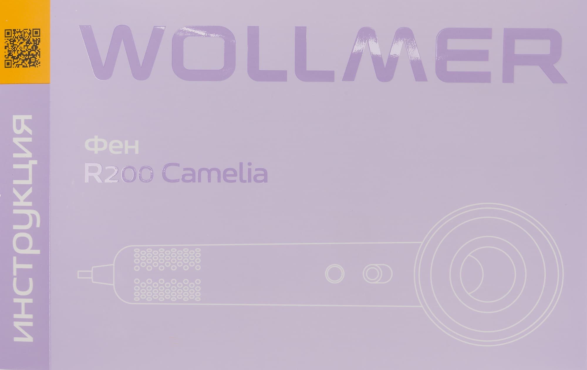 Фен Wollmer R200 Camelia — компактный и легкий современный прибор для сушки волос с классическими насадками в виде концентратора и диффузора, а также капсулой с эссенцией масла камелии.