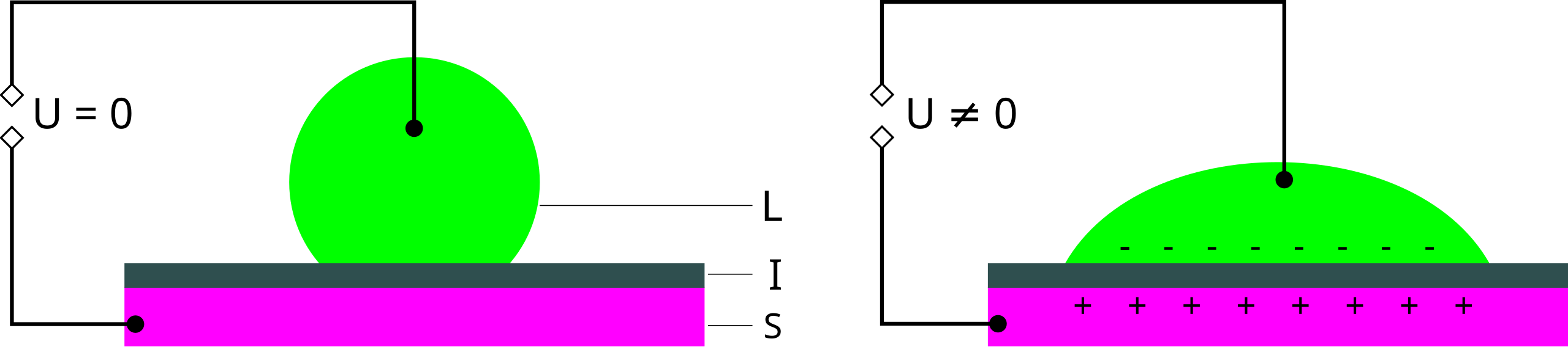 При подаче напряжения структура «электрод — диэлектрик — электролит» начинает работать как конденсатор. В систему добавляется электрическая энергия, в результате чего эффективное поверхностное натяжение уменьшается, краевой угол снижается, и капля расплющивается. Изменение формы происходит за миллисекунды, что делает электросмачивание одним из самых быстрых способов перестройки оптической силы без механики.