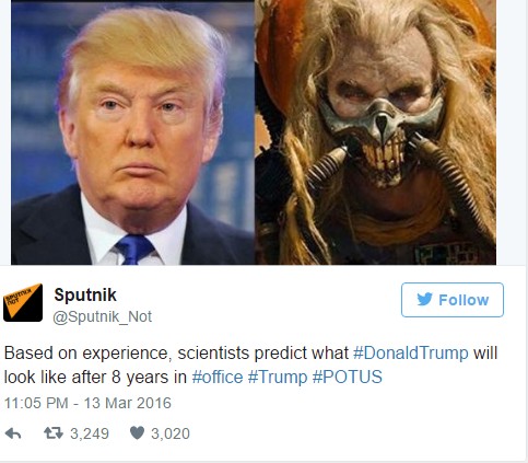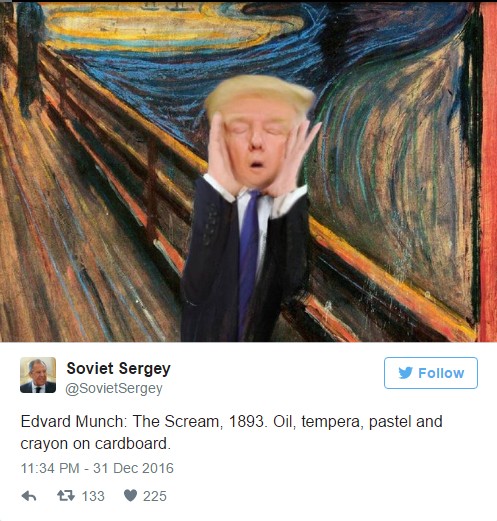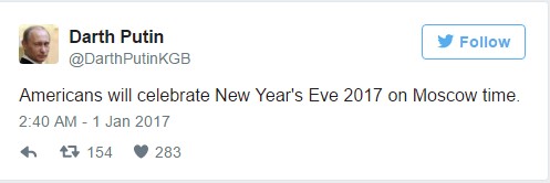На самом деле один из указанных аккаунтов под названием «Дарт Путин» (DarthPutinKGB) оставил последнюю запись 1 января, которая гласит: «Американцы будут праздновать новый 2017 год по московскому времени».