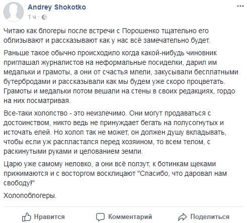 Читаю как блогеры после встречи с Порошенко тщательно его облизывают и рассказывают как у нас всё замечательно будет.