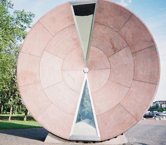 Инсталляция расположена в общественном парке, и любой желающий может подойти и попробовать самостоятельно повернуть это колоссальное гранитное колесо.