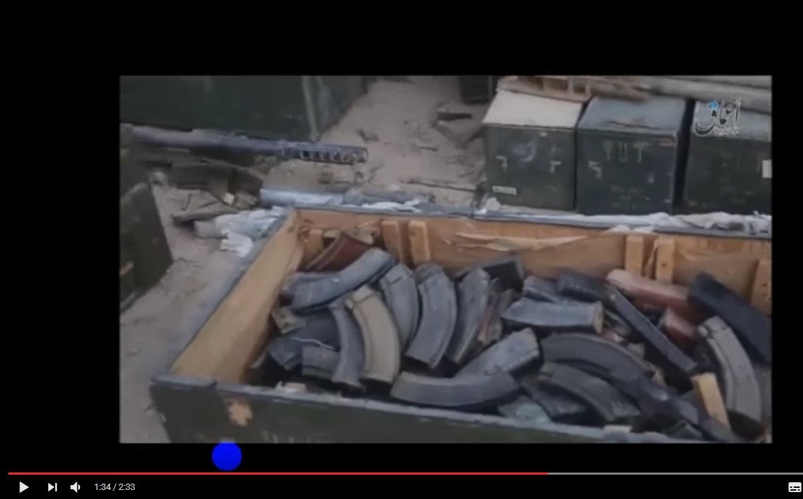 Танковые снаряды на видео обсуждать вообще как-то неудобно - танковые подразделения российской армии в Сирии в боях не участвуют! Как и патронные ящики - их происхождение вообще невозможно установить. Поставки патронов